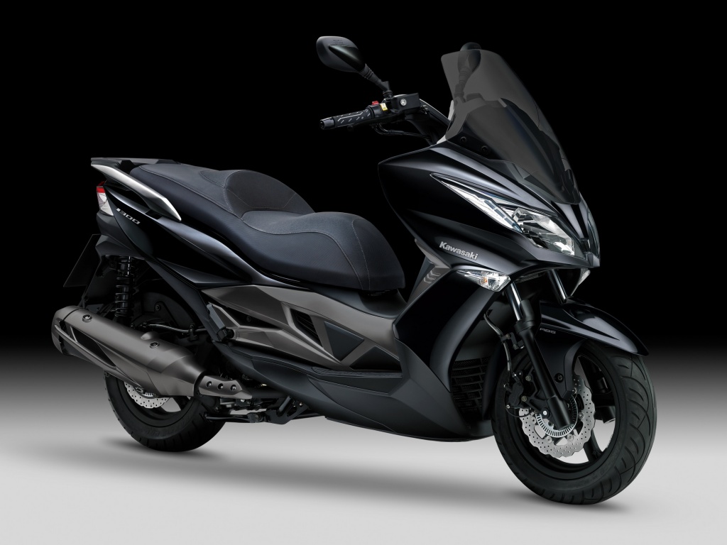 Kawasaki J300 — одна из самых ожидаемых премьер мотовыставки EICMA 2013, которая открылась вчера в Милане. Дело в том, что японский производитель впервые разработал достойный скутер специально для европейских покупателей. Конечно, не стоит забывать, что скутер Kawasaki J300 разрабатывался в тесном сорудничестве с тайваньским изготовителем Kymco, который поставляет двигатели для скутера: 299 см3, жидкостное охлаждение, 1-цилиндровый, мощность 29.5 л.с. и крутящий момент 25 Нм. Таким же силовым агрегатом комплектуются скутеры Kymco Downtown 300i. Несмотря на некоторые общие черты с Kymco, скутер J300 обладает характером Kawasaki, который прослеживается в дизайне и комплектации: агрессивный обтекатель, дизайн передних фар в стиле Kawasaki Ninja, светодиодные поворотники, задние фонари и т.п. Скутер оснащается 37-мм телескопической вилкой и регулируемыми (преднатяг) задними амортизаторами с 5 опциями настройки. По словам Kawasaki подвеска настроена для спортивного и агрессивного стиля езды, а место для ног спроектировано так, чтобы скутер J300 можно было закладывать немного больше, чем позволяют традиционные скутеры других производителей.